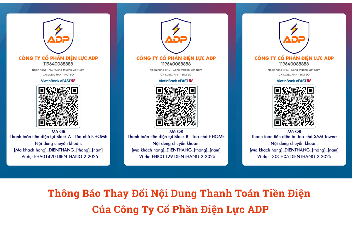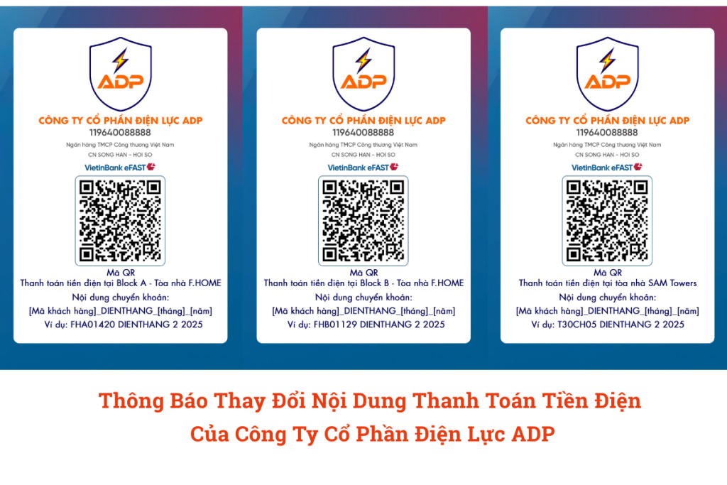 THÔNG BÁO: ADP thay đổi nội dung thanh toán tiền điện